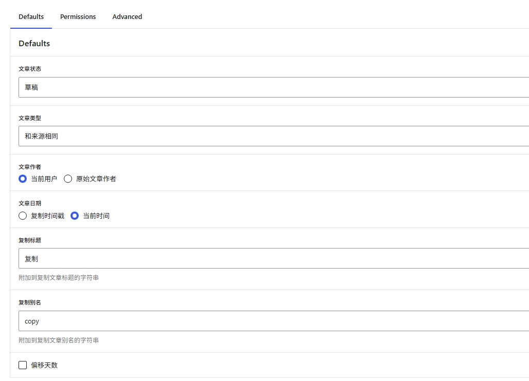 偏移天數:勾選後可以設定新複製的文章顯示時間。