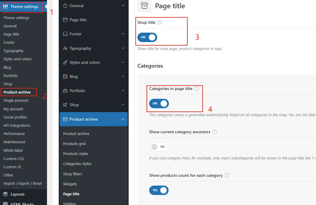 進入你網站後台– Theme settings – Product archive – Page Title ↓