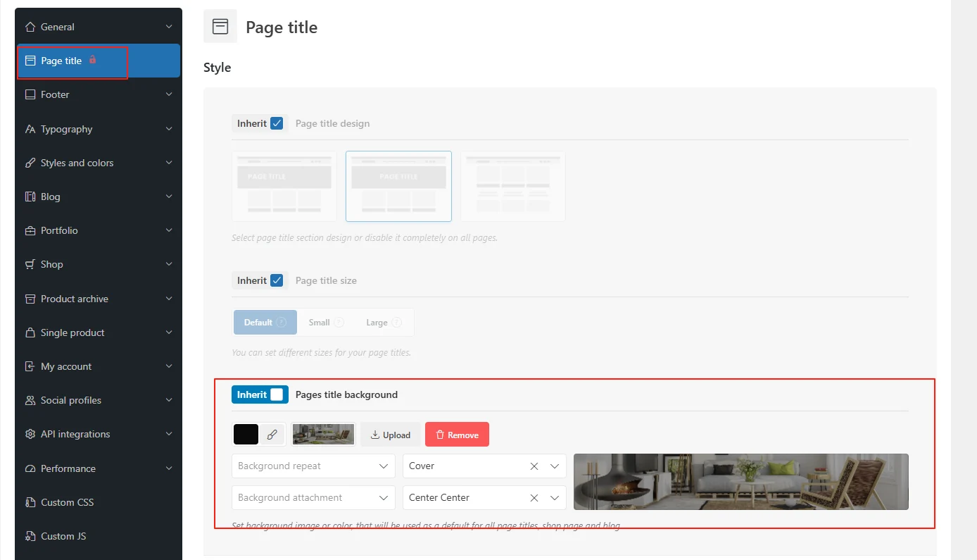 為產品聚合頁的頁面標題元素個別設定背景,需要用到 WoodMart 主題的預設功能。